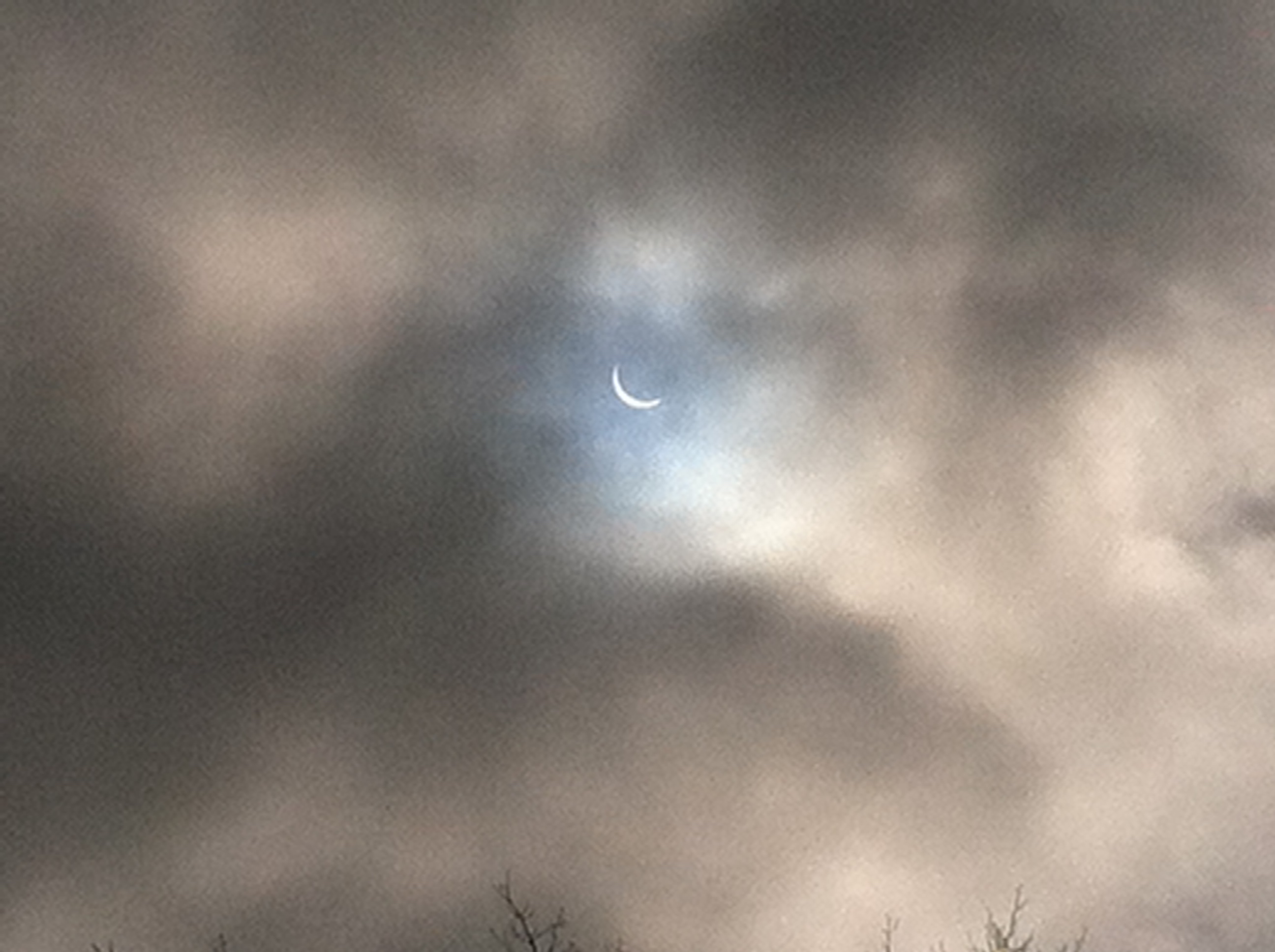 There was a nearly total solar eclipse here this morning: it was total rather further north-west of here, but here it max’d out at about 97%. Most of the University staff came out to watch. We’d been promised quite thick cloud, but in the event, there was mix of light and heavy cloud, and that meant that one could sometimes see the crescent of the sun using a dark filter (I used some old photo slides from 1978 – others actually had the right glasses, while others looked at the reflection and one person used a plastic divider which worked rather well). But one way or another we all saw it. My colleague Peter Hancock had his camera properly set up, and took a rather nice image (which I’ll as him if I can put up here). Meanwhile here’s one of mine taken with an iPhone 4!